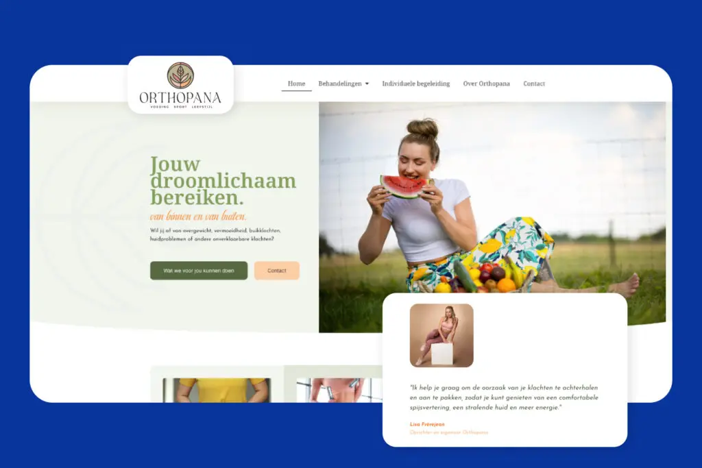 Het webdesign-team heeft een prachtige website ontworpen voor Orthopana. Voor Lisa, specialist in orthomoleculaire geneeskunde, hebben we een compleet nieuwe website gebouwd. Inclusief een geheel nieuwe huisstijl – van logo tot website – met warme aardekleuren en een persoonlijk tintje. Dit weerspiegelt haar missie om mensen van binnenuit te laten stralen!